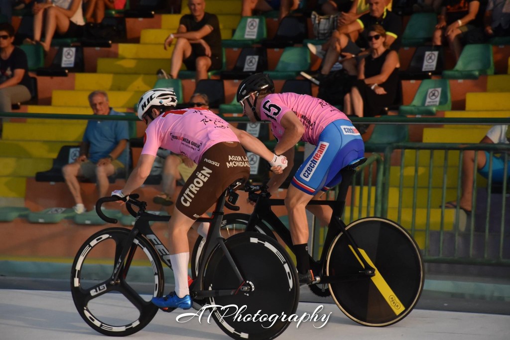 Fiorenzuola concluded with three consecutive days of madison, for which I was paired with Mykyta Yacovlev, a 20 year-old Ukrainian who spoke zero English. Of course, I don’t speak any Ukrainian either. Without communication, racing together proved difficult, but we managed to ride solidly, learning along the way. On the final night, Mykyta crashed himself out during one of our exchanges, meaning that I had to ride solo for five or so minutes while he laid face down in the grass in the infield, motionless. Fortunately he only had superficial injuries, and after attention from the medics he got back into the race, still bleeding. By the time we finished, my forearm and hand were covered in his blood from the exchanges.