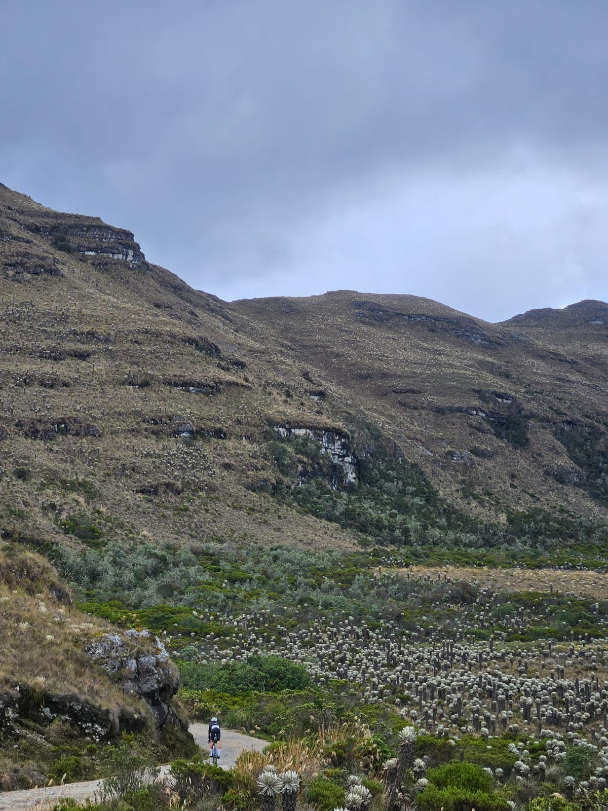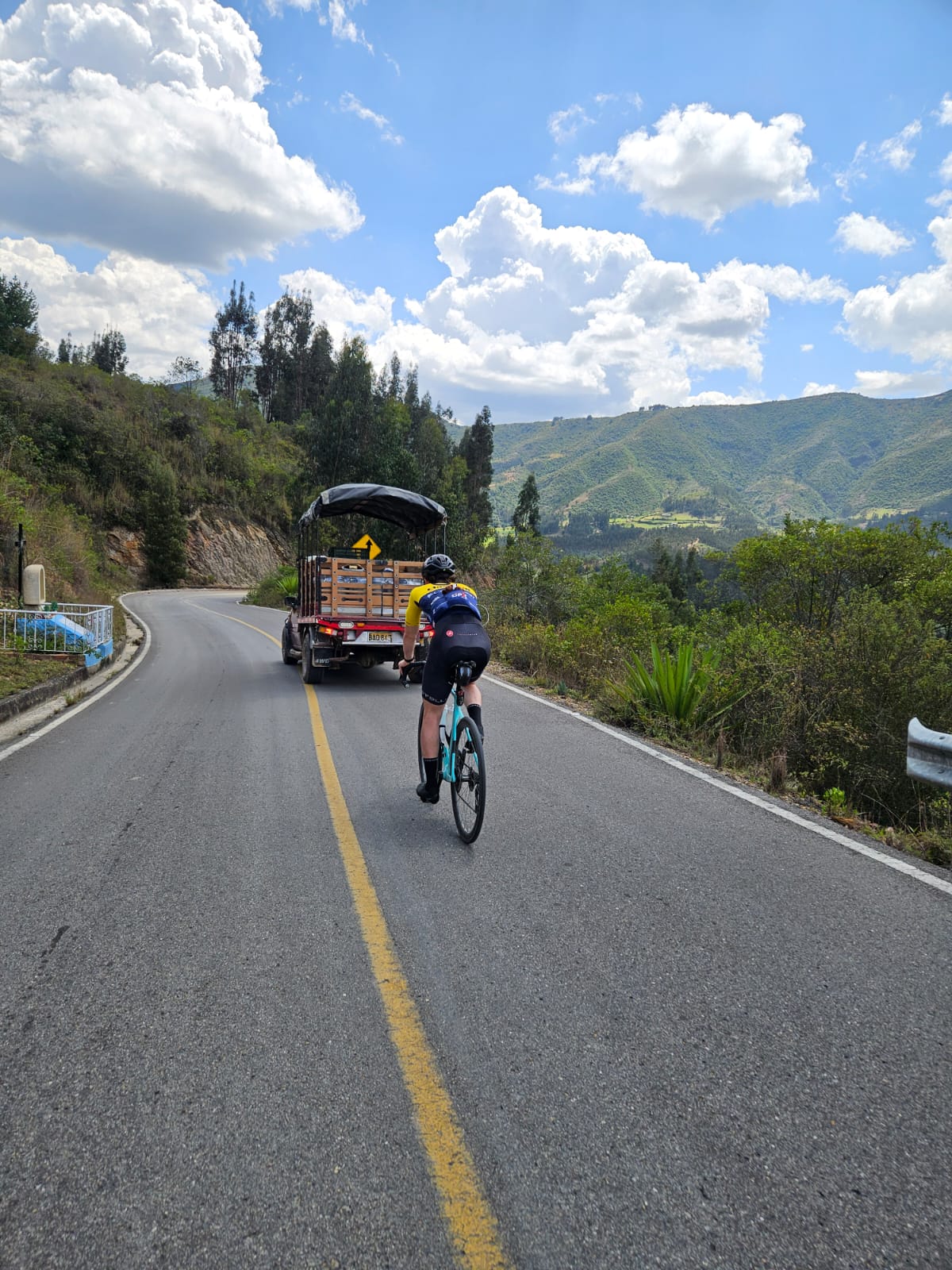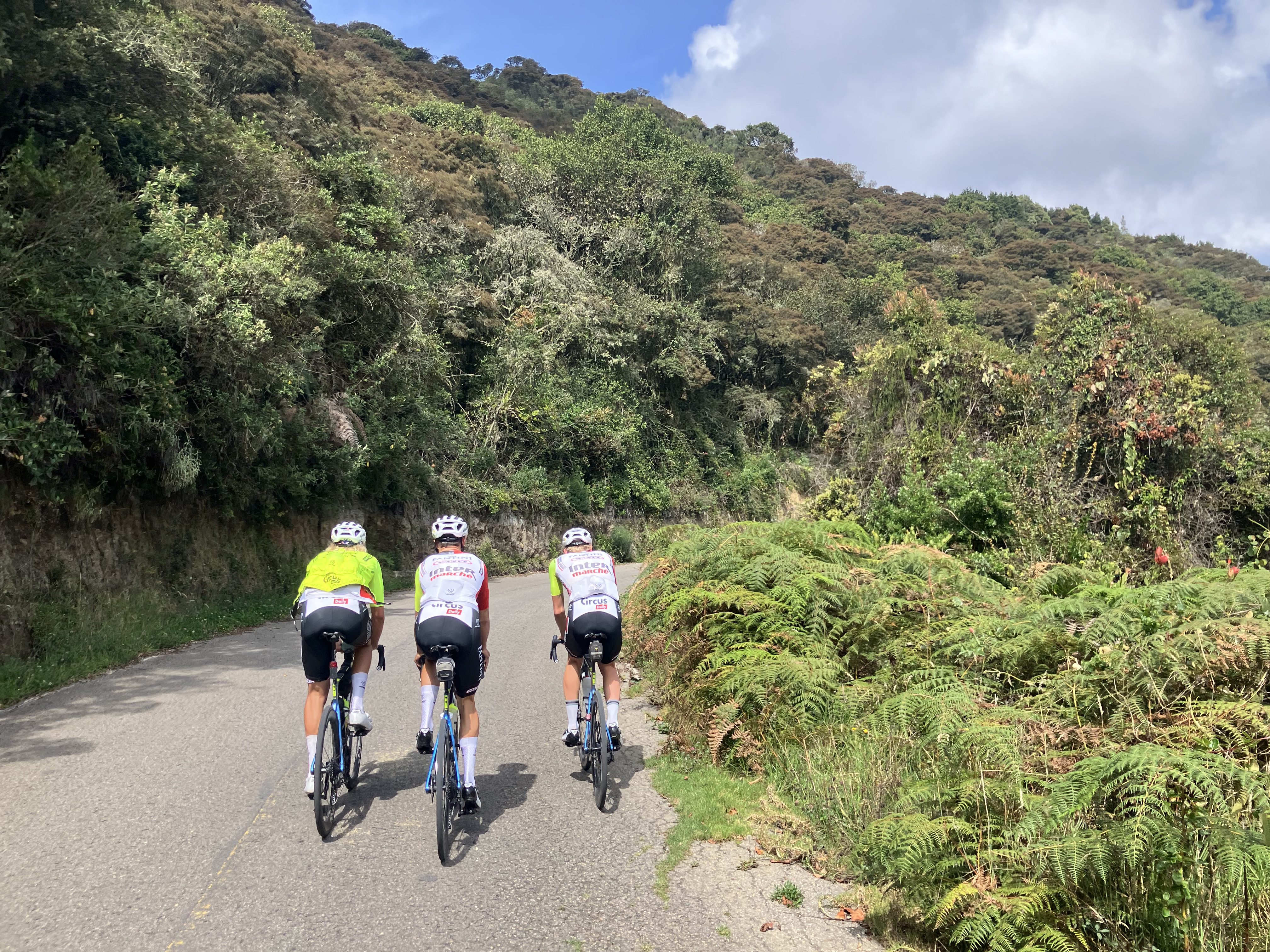 I had been to Colombia once before, in 2022 for a Nations Cup in Cali. But due to security concerns then we couldn’t leave the hotel or track, so I never properly experienced the country. This time around we spent a day in Bogotá and took a nice walking tour before driving three hours north towards Paipa, a vacation and cycling hotspot for Colombians that was nearly void of foreign tourists! In Paipa, we slept at 2,680 meters (8,800 feet) above sea level: ridiculously high. I have previously spent time at altitude in Boulder and Colorado Springs, Colorado, but this was a different level – literally. I spent much of the first week exhausted; it took some time to accept that this was normal. The roads around Paipa were beautiful: there were climbs up to 3,800 meters (12,500 feet), a 1.5-hour lap around a lake at 3,000 meters (9850 feet), a long road to a coal mining town, and much more. The traffic was intense at times, but the cars were respectful of cyclists, and we got lots of friendly honks and waves. Just as I was getting into a good rhythm, I got serious food poisoning and an ensuing fever, and was out of commission for a few days. This brought my tally of trips to South America and food poisoning or illness to three for three. Just as I recovered from that, I had a freak crash in training, striking Georg’s pedal and launching myself off my bike at 45 kph. Luckily I just had road rash and was able to finish my six-hour ride that day. My last week of training in Colombia went well. Huge thanks goes out to Román and Rodolfo Torres for helping us with logistics and providing good company during our stay. Interestingly, Rodolfo, who is a European ex-pro and second place finisher on a stage of the 2015 Vuelta, is now the mayor of the nearby town Busbanzá, so he was incredibly well connected. I will certainly be back!