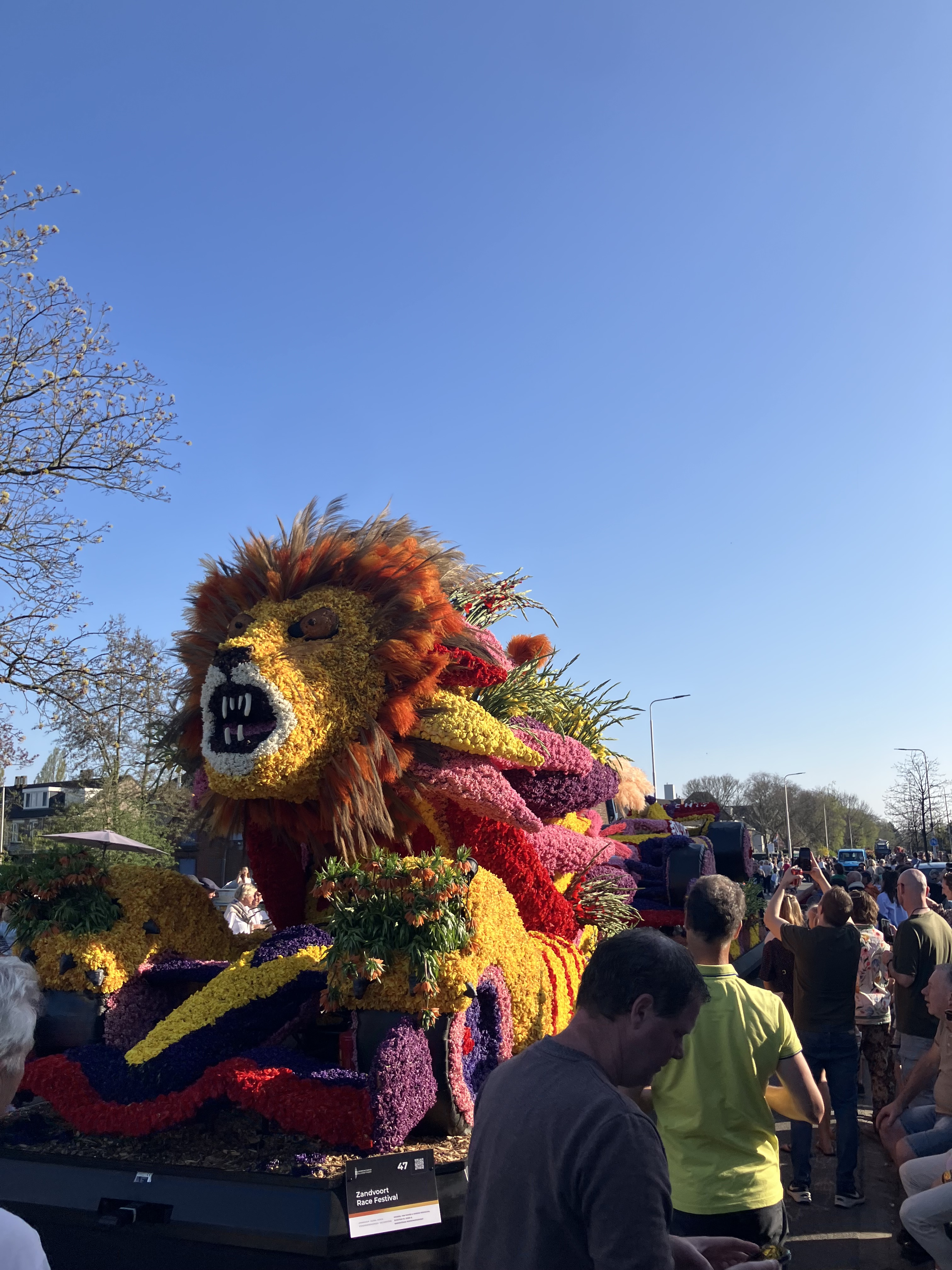 One of the incredibly detailed floats in the Flower Parade and some endless fields of Tulips.