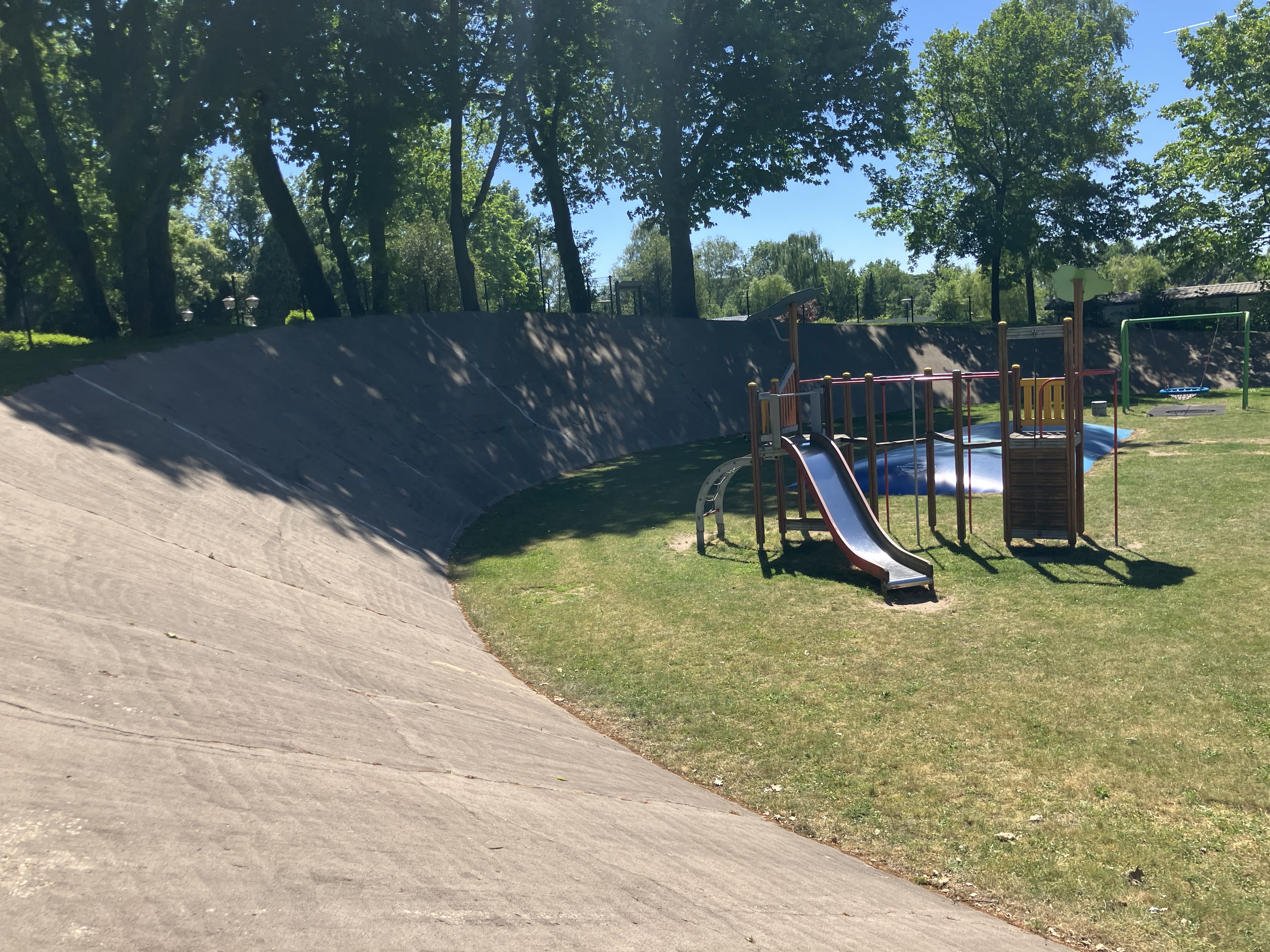 May: relaxing on the Rhine with Michael, some racing, the Bevrijdingsdag parade (WWII Liberation Day in the Netherlands), a flower that a little girl gave me which I added to my basil plant, and the old velodrome in Wageningen which has since been turned into a playground.